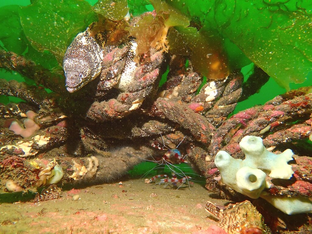 だいたいそのくらいの水深だと二連魚礁がありまして、こんな感じでした。